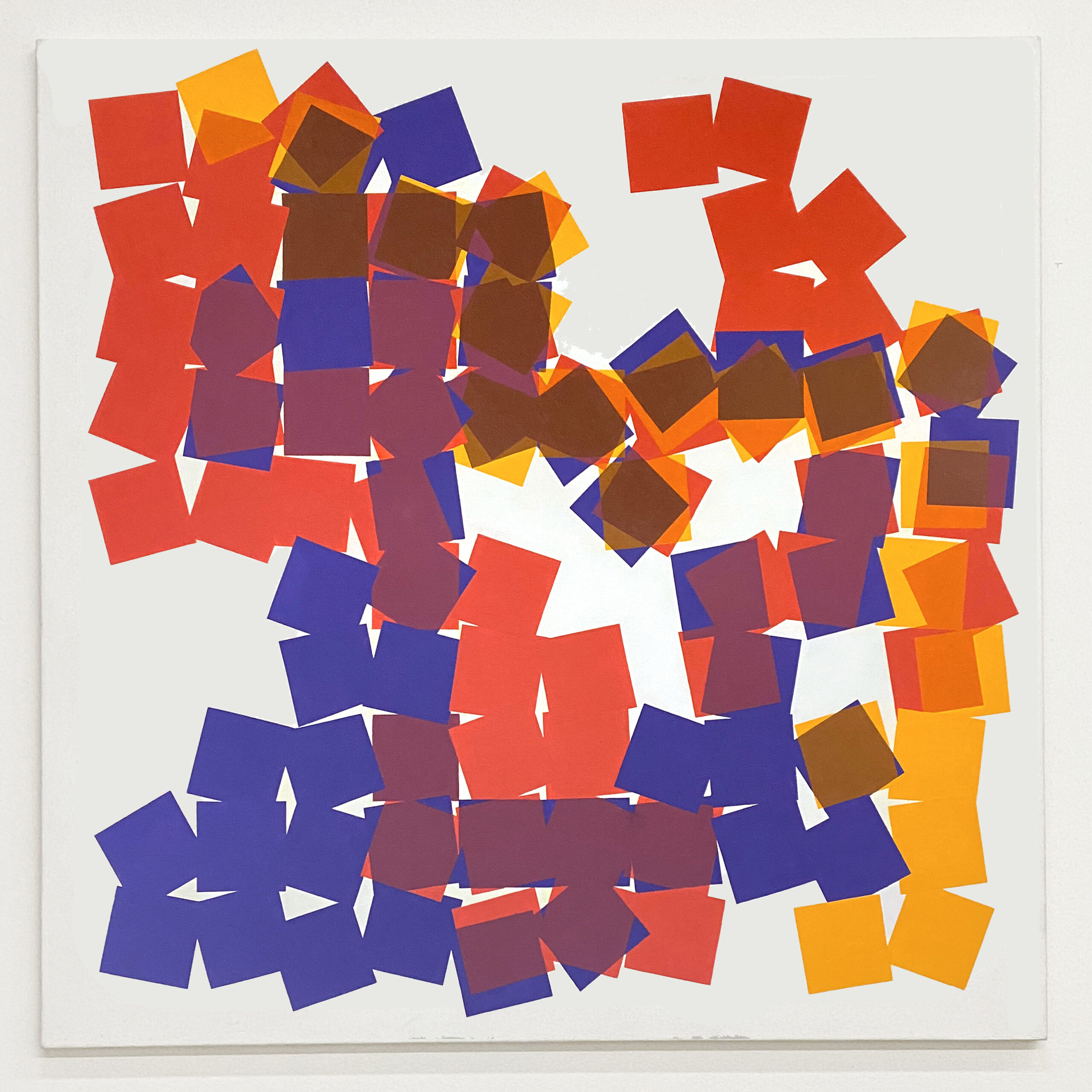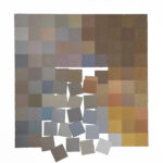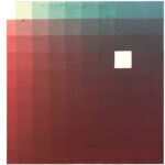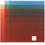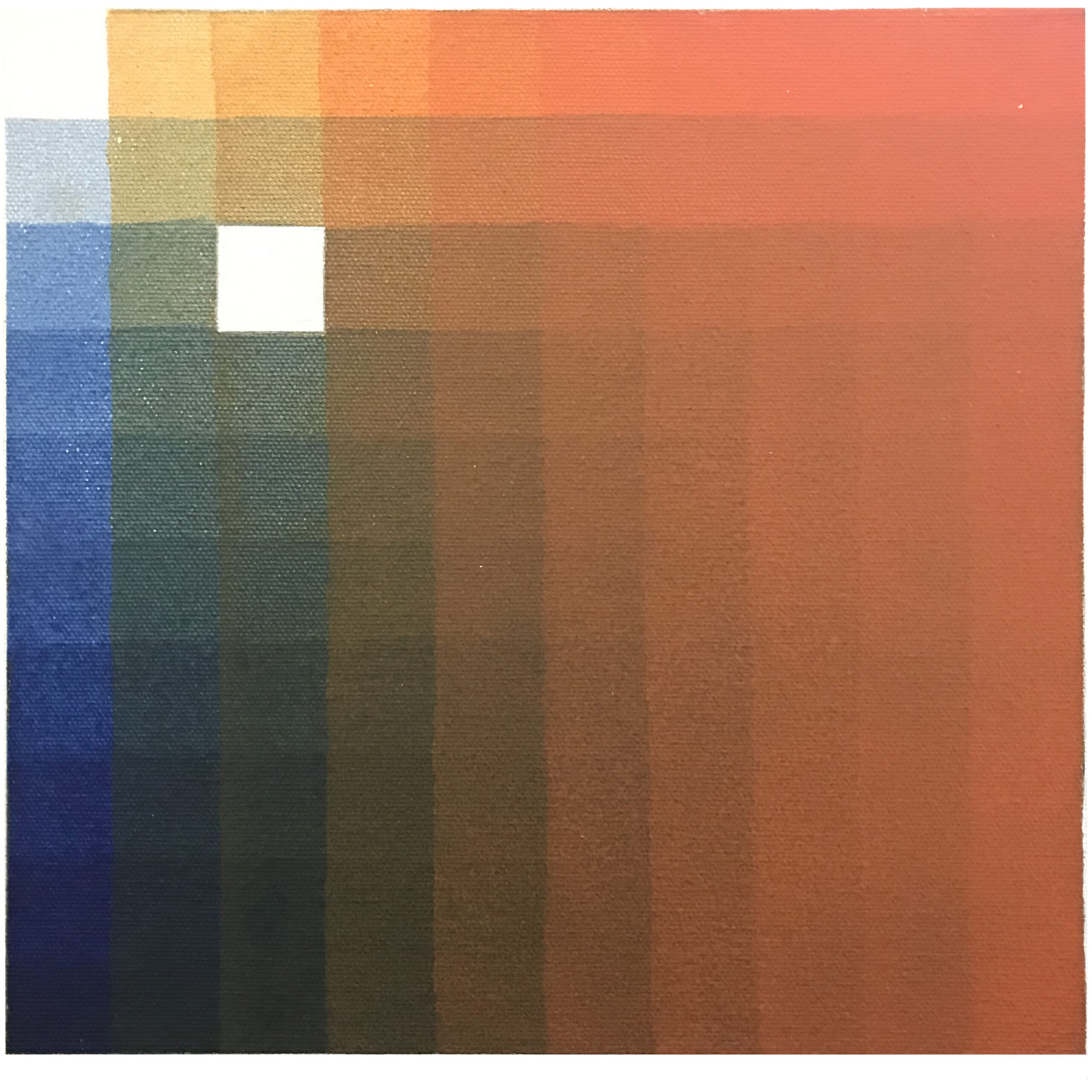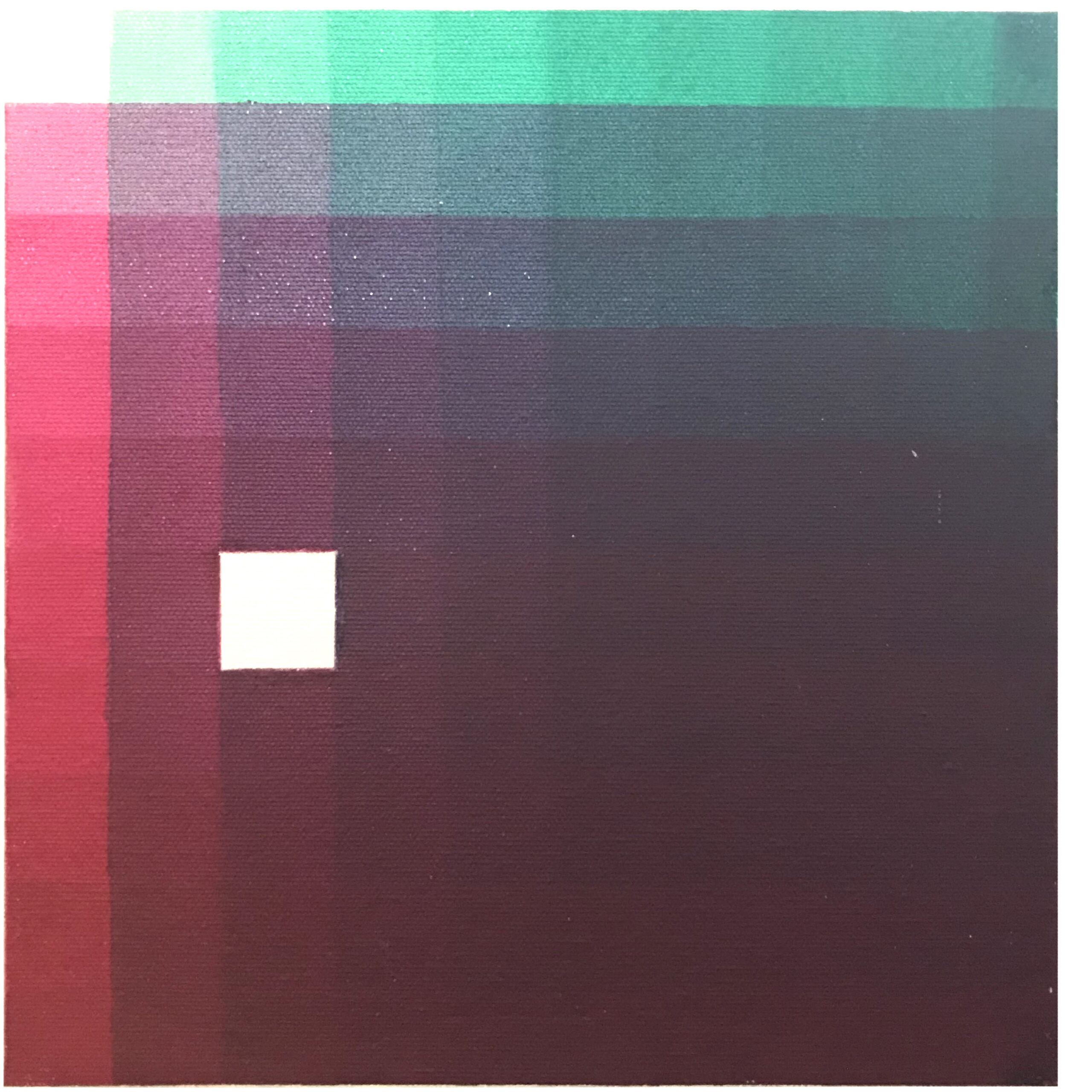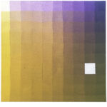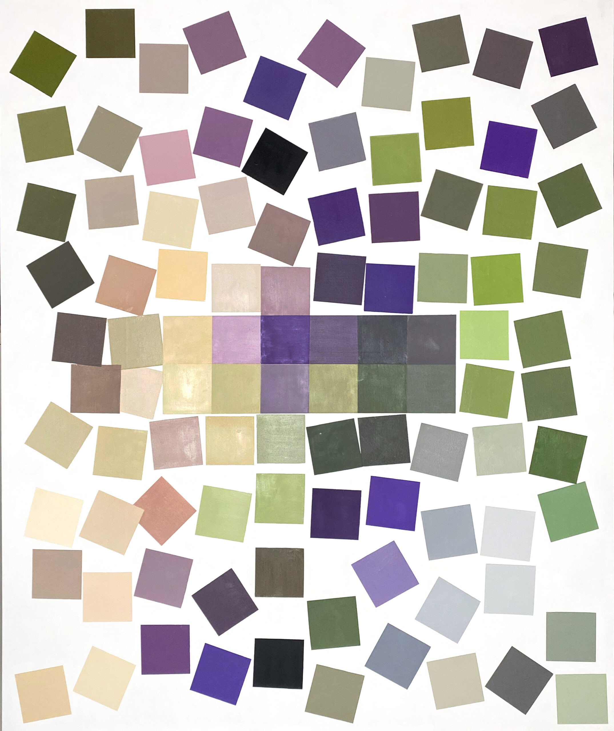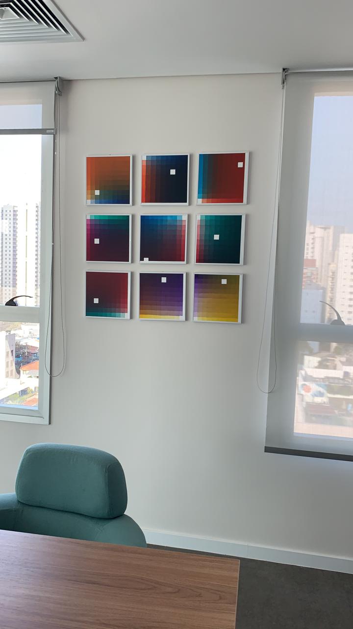 ESTUDOS CROMÁTICOS nos quais a escolha das cores e das formas é delegada. A  artista cria um procedimento, que deve executar de forma fidedigna, e deixar as imagens surgirem.