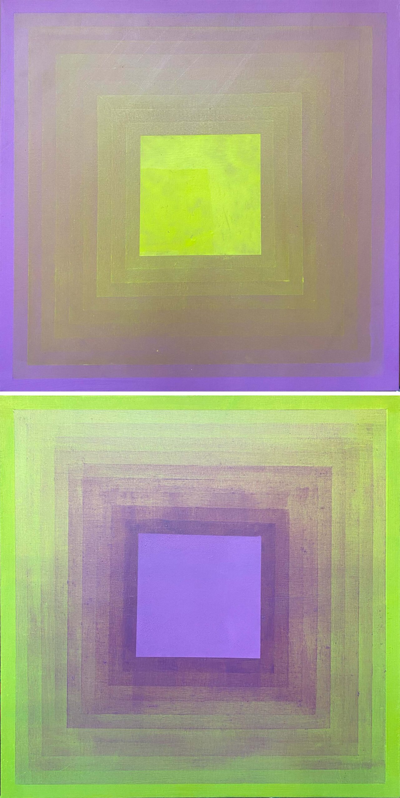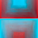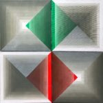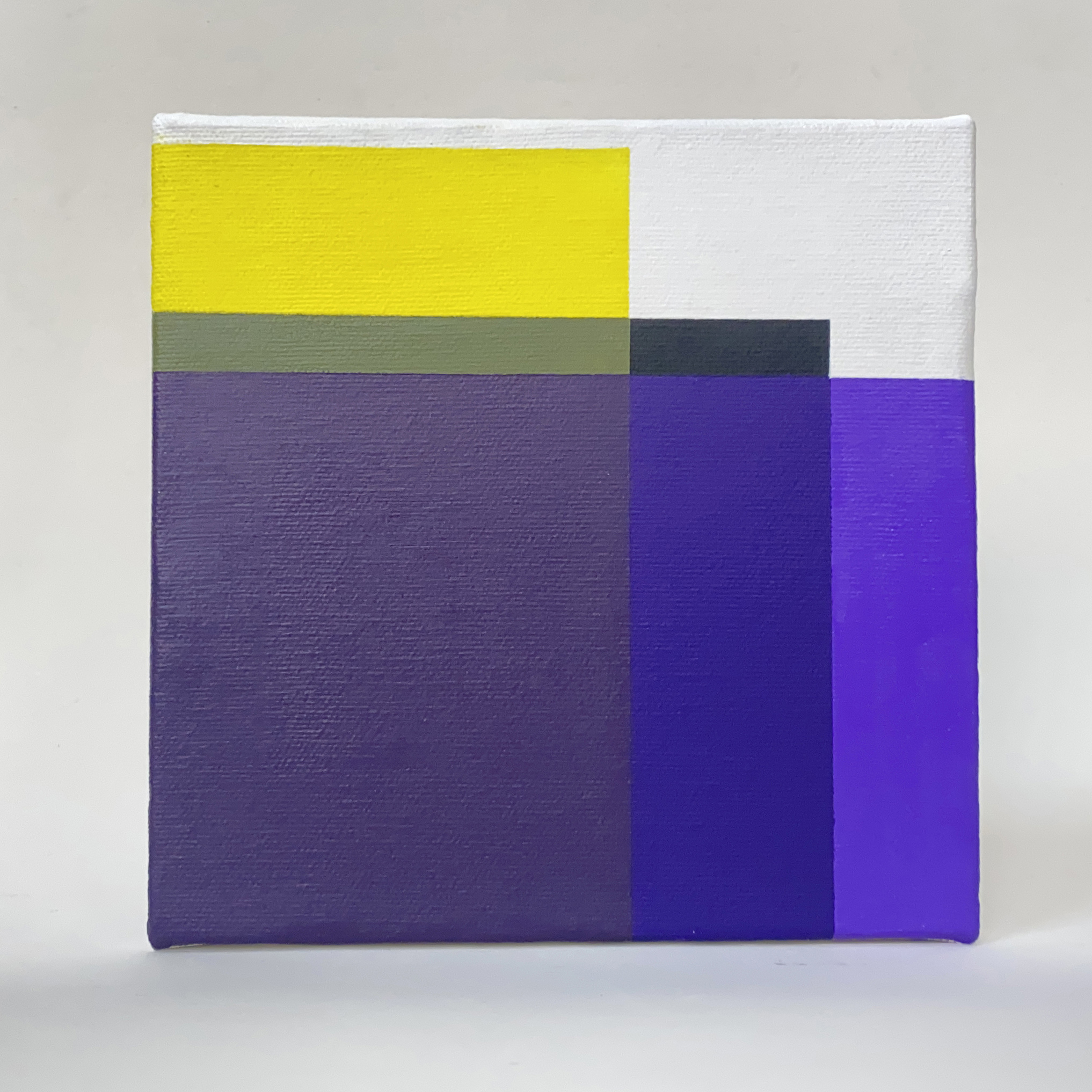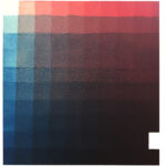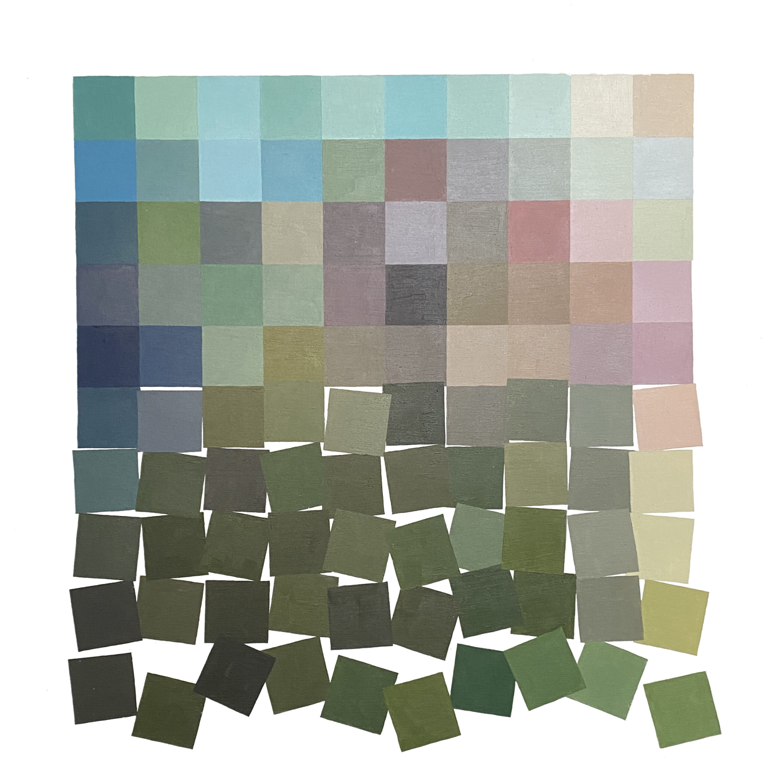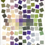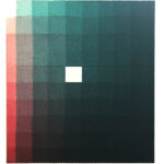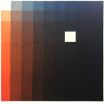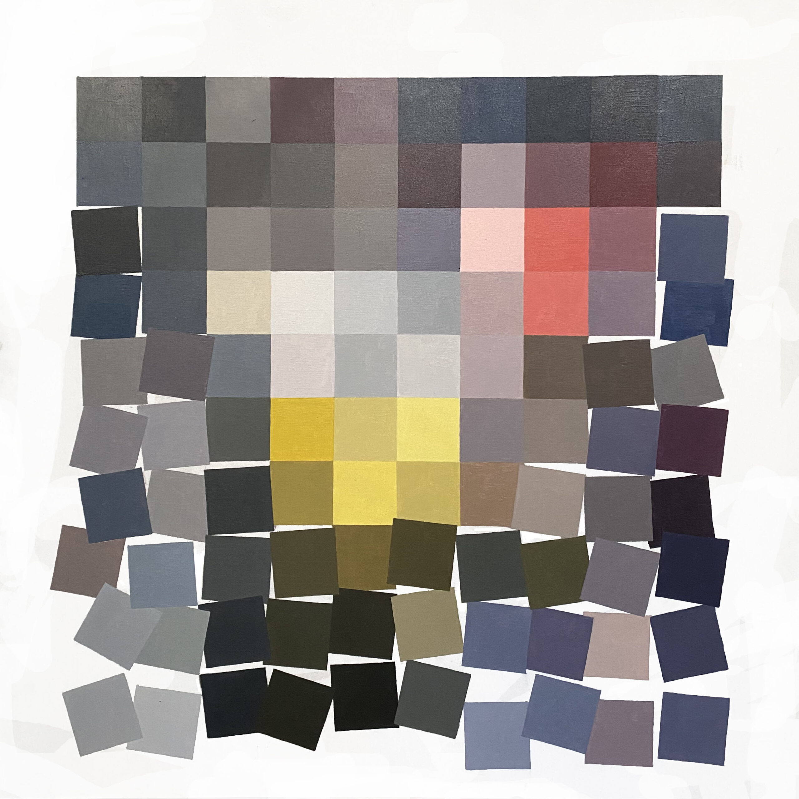 ESTUDOS CROMÁTICOS nos quais a escolha das cores e das formas é delegada. A  artista cria um procedimento, que deve executar de forma fidedigna, e deixar as imagens surgirem.