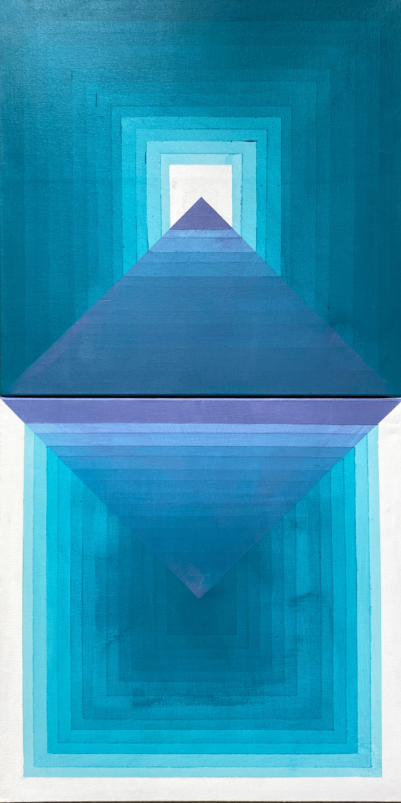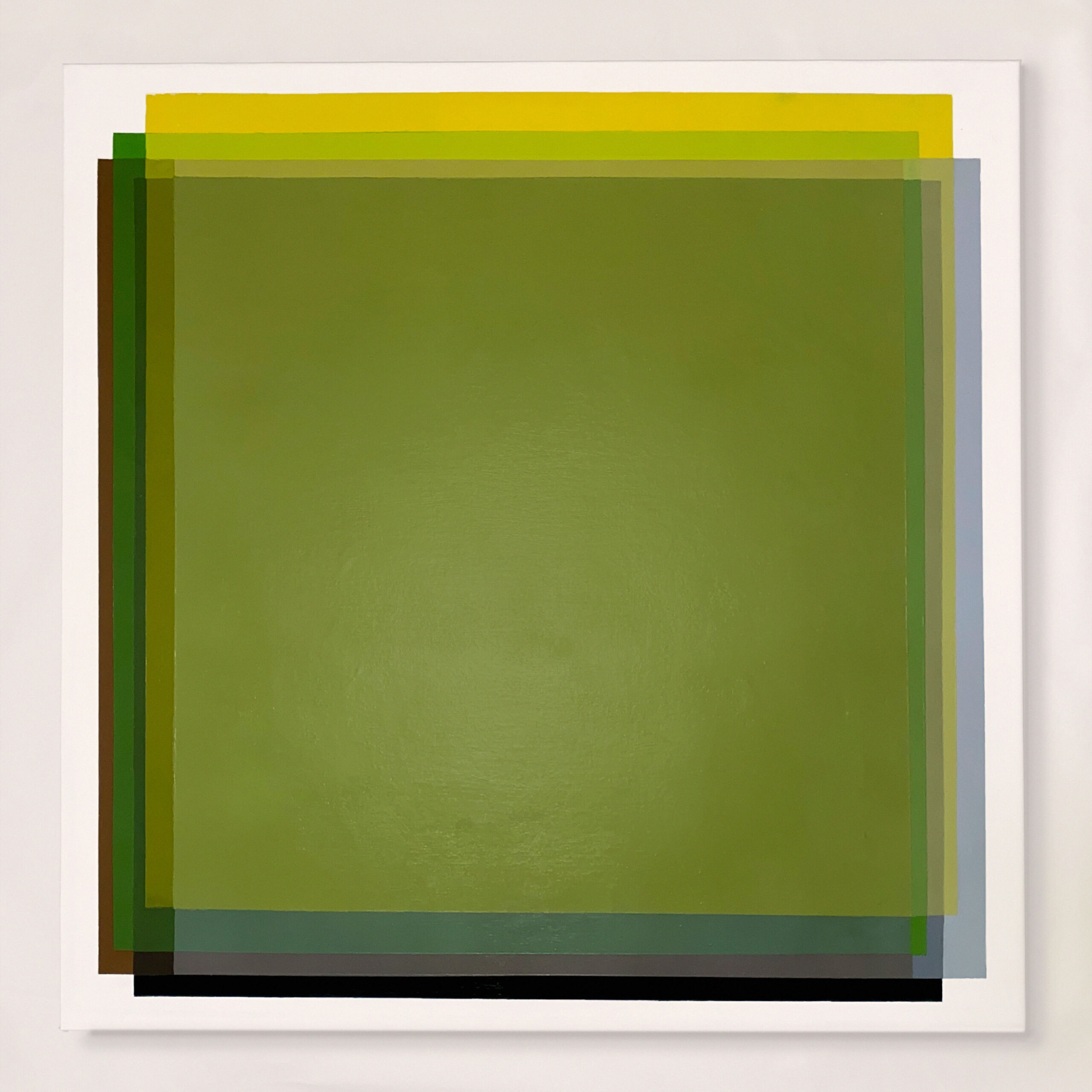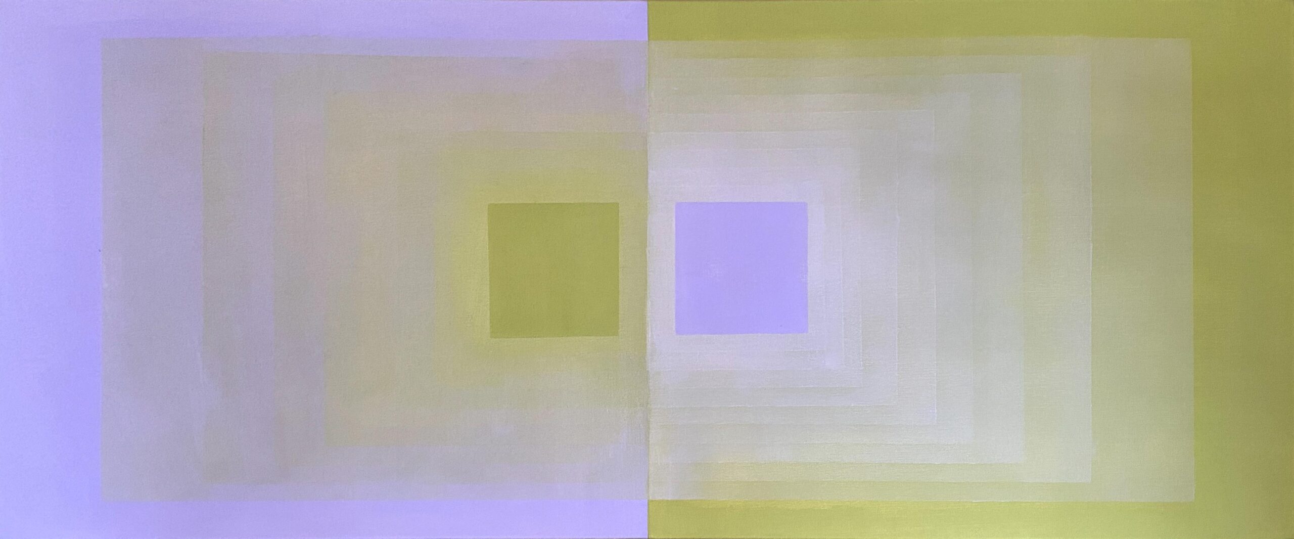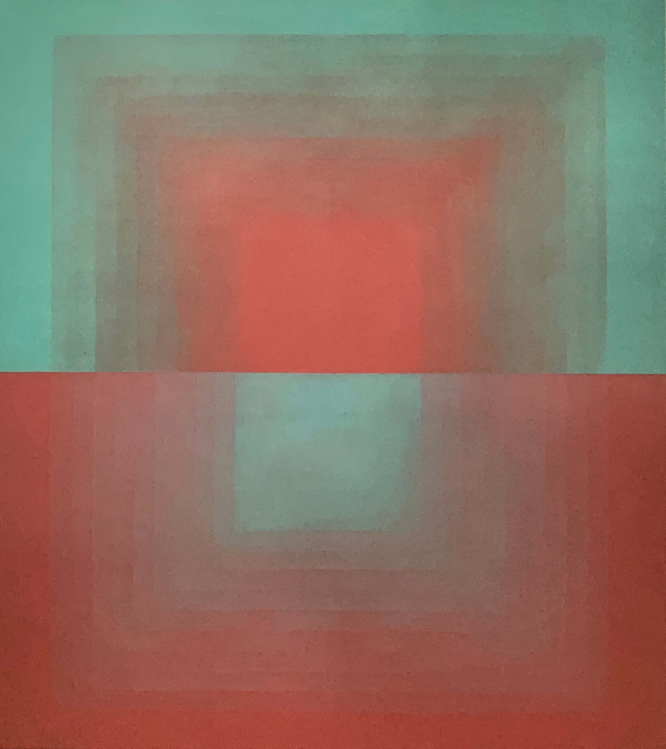 ESTUDOS CROMÁTICOS nos quais a escolha das cores e das formas é delegada. A  artista cria um procedimento, que deve executar de forma fidedigna, e deixar as imagens surgirem.